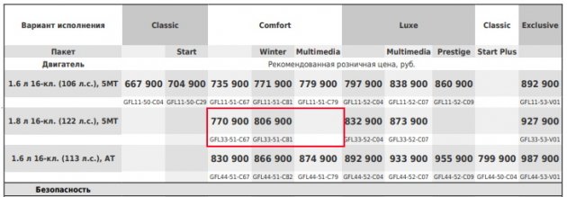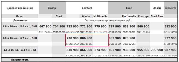 В октябре из прайс-листов хэтчбека Lada Granta были исключены следующие комплектации: