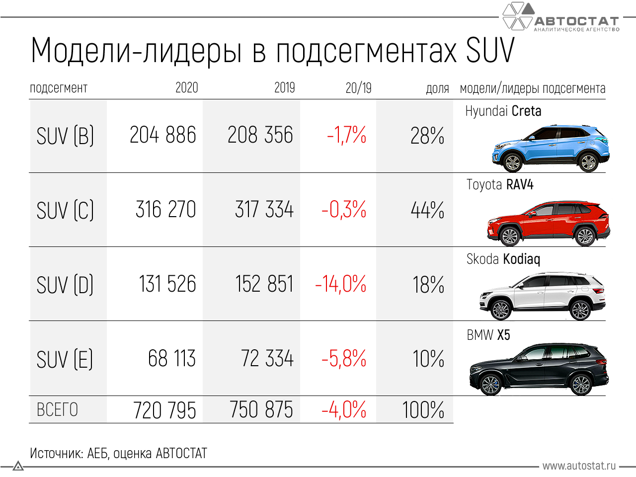 ТОП-10 самых продаваемых SUV в 2020 году в России: