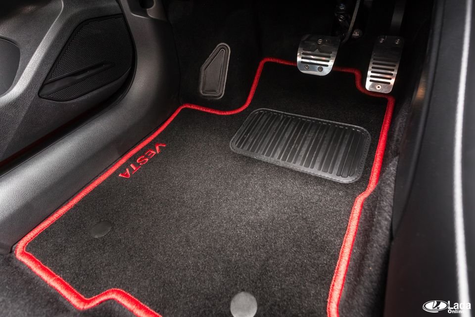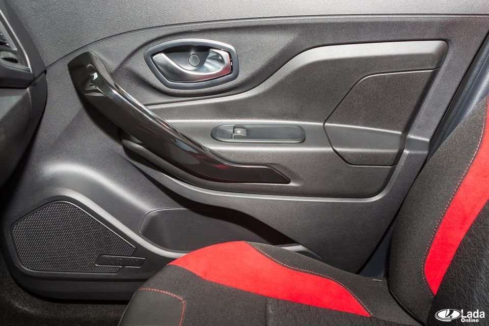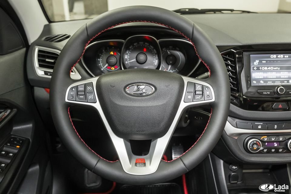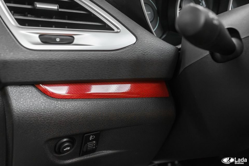 Экстерьер и интерьер кроссовера оформлен аналогично. Отличия от спец-версии LADA Vesta только в наличии красной отсрочки на кожухе рычага КПП.