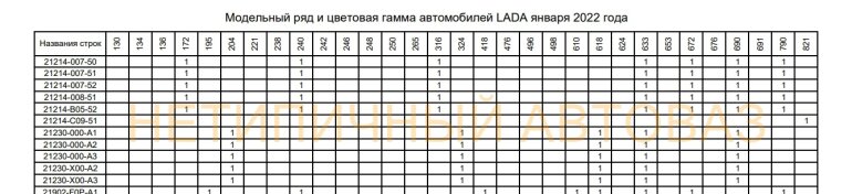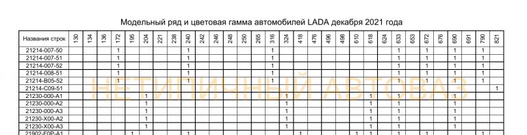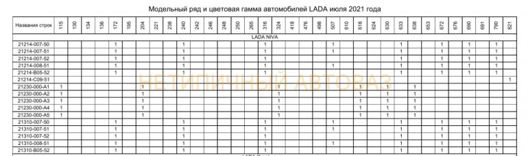 В тоже время в распоряжении группы «Нетипичный АВТОВАЗ» во ВКонтакте оказался документ о планах производства внедорожника. Как следует из приведенной ниже таблицы, эти внедорожники, обозначаемые индексом «21310», присутствуют и в июльской программе сборки. «Единички» в графах обозначают не количество, а играют роль «галочек».