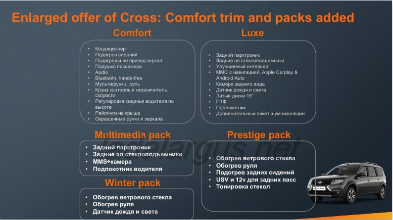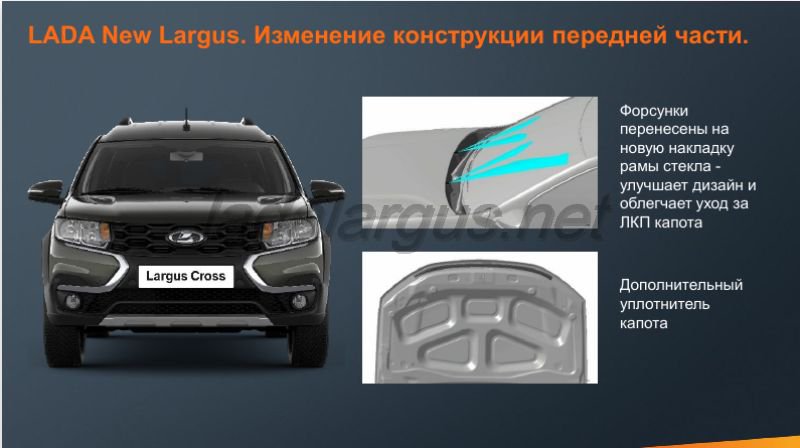 В конструкции Lada Largus FL используется 267 новых и модернизированных деталей, 145 заимствований от других моделей LADA и Renault.