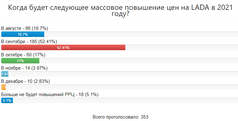 Напомним, в этом году АВТОВАЗ первый раз поднял стоимость на автомобили LADA 15 января (в среднем по всему модельному ряду прибавка в цене составила примерно 2-5%), затем 15 марта (прибавка в цене составила примерно 2%) и 1 мая (+2%).