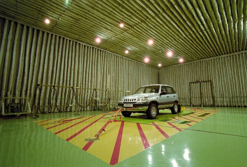 Камера испытаний на электромагнитную совместимость: здесь проверяют и совершенствуют электрооборудование автомобилей. В лаборатории электромагнитной совместимости АВТОВАЗа действует экранированная безэховая камера – одна из самых больших в мире, что позволяет вести исследования в широком диапазоне волн. Стены камеры покрыты пирамидами-абсорберами, которые гасят и звуки, и электромагнитные волны. В лаборатории возможна имитация электромагнитных полей практически от любых существующих источников, от сотовых телефонов, до высоковольтной ЛЭП.