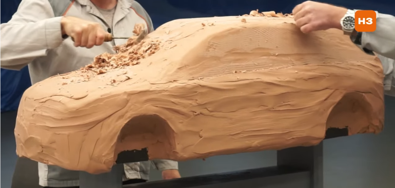 Работа по созданию нового авто по-прежнему невозможна без физических прототипов. Перевод матмодели в физический образец (масштабный или в натуральную величину) – это очень квалифицированная работа. Макетчики по пластилину работают над макетом перед фрезерованием, нанося пластилин вручную, и после, удаляя с поверхности макета стружку и следы от фрезы. Специалисты, выполняющие эту работу, очень востребованы на заводе - профессия редкая не только в России, но и в мире.