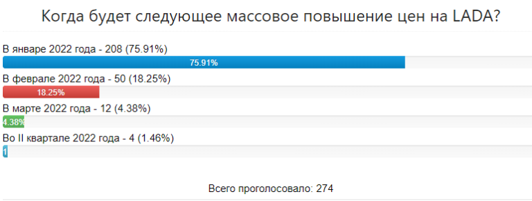 Напомним, в этом году АВТОВАЗ первый раз поднял стоимость на автомобили LADA 15 января (в среднем по всему модельному ряду прибавка в цене составила примерно 2-5%), затем 15 марта (прибавка в цене составила примерно 2%), 1 мая (+2%), в июле (+2,43%), сентябре (+2,7%) и октябре (+1,33%).