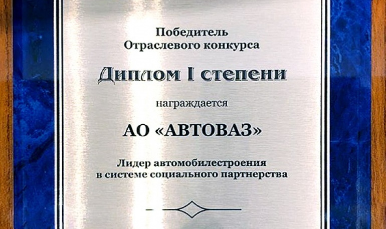 В декабре АВТОВАЗ стал лидером социального партнерства. Конкурс «Лидер автомобилестроения в системе социального партнерства» проводится совместно Профсоюзом работников автомобильного и сельскохозяйственного машиностроения Российской Федерации, куда входит Первичная профсоюзная организация АВТОВАЗа и Ассоциацией «Объединение автопроизводителей России» при поддержке Минпромторга России.