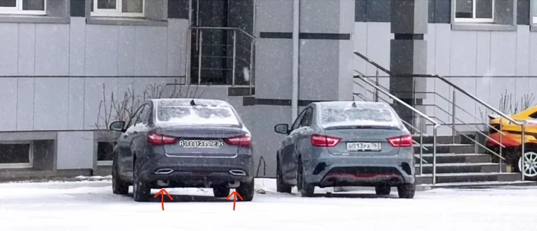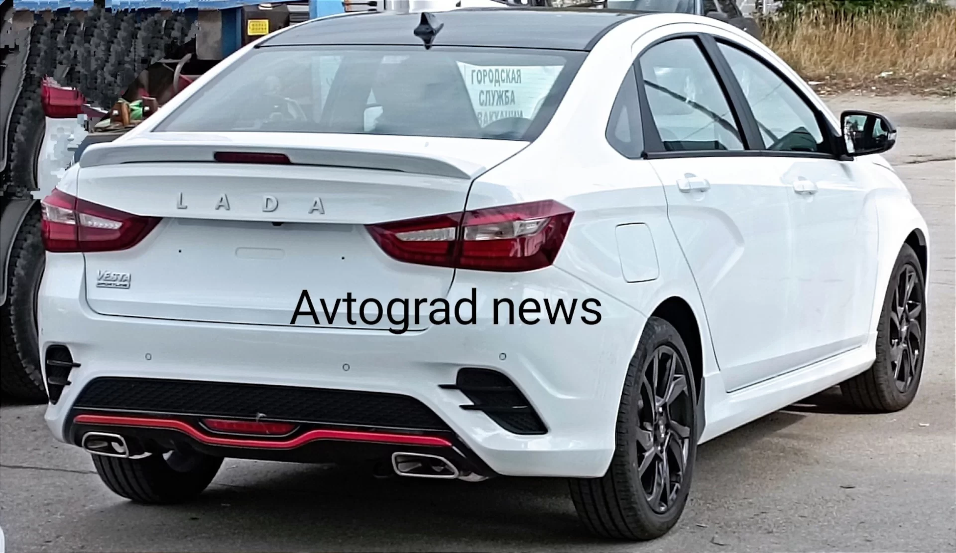 Обн.15.09.2023: В Сети появились очередные шпионские фото спортивной версии Lada Vesta NG. Автомобиль выделяется раздвоенным глушителем, литыми дисками и обвесом.
