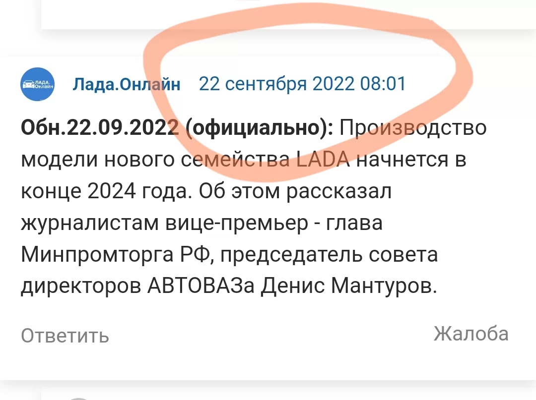 Обн.22.09.2022 (официально): Производство модели нового семейства LADA начнется в конце 2024 года. Об этом рассказал журналистам вице-премьер — глава Минпромторга РФ, председатель совета директоров АВТОВАЗа Денис Мантуров.
