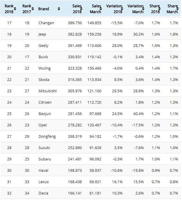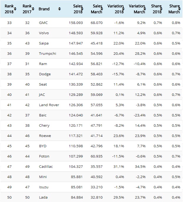 По итогам марта в мире было реализовано более 32 810 автомобилей марки LADA. Это на 23,7% превышает показатели за аналогичный период 2017 года. А в первом квартале 2018 года всего было продано 84 884 машины этой марки. Это на 29,5% больше, чем годом ранее.