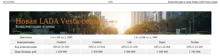В ходе регулярного мониторинга цен и комплектаций автомобилей LADA сайту Лада.Онлайн удалось обнаружить изменение в прайс-листах Lada Vesta. С 5 октября АВТОВАЗ увеличил рекомендованную розничную цену (РРЦ) на две модификации этой модели, а также пересмотрел некоторые опции.