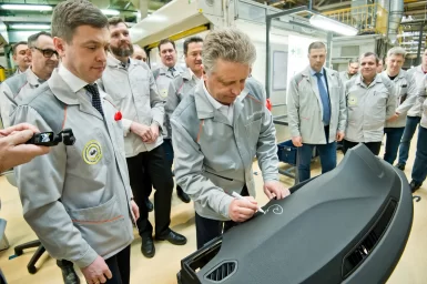 Обн.25.01.2024: Президент АВТОВАЗа Максим Соколов и ключевые руководители побывали в производстве пластмассовых изделий, где завершился процесс переноса из Ижевска на тольяттинскую площадку технологии изготовления "мягкой" многослойной панели для автомобилей LADA VESTA. Об этом пишет "Нетивичный АВТОВАЗ".