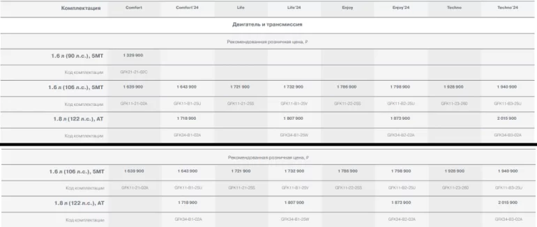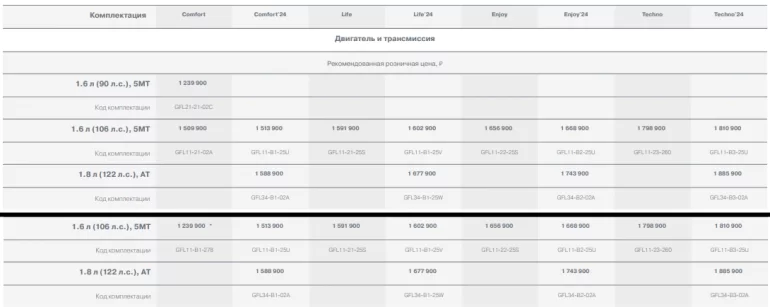 Из новой базовой версии Comfort исключили подушки безопасности водителя и переднего пассажира, добавили регулировку по высоте и поясничной поддержкой сиденье водителя и подсказчик переключения передач в комбинации приборов.