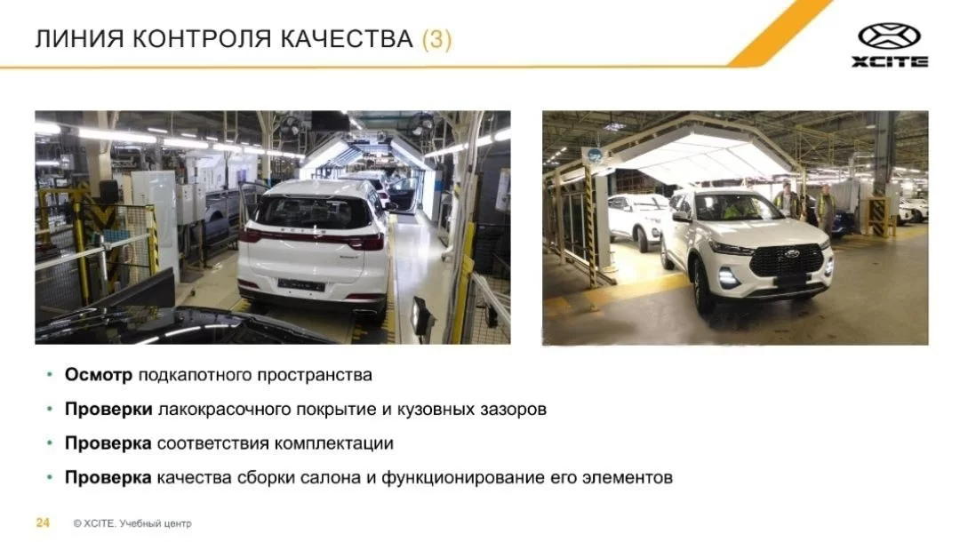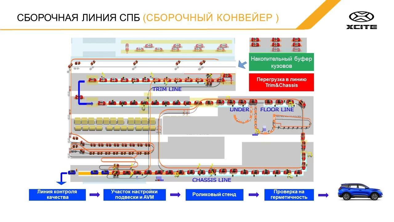 Новый кроссовер XCITE X-Cross 7 (копия Chery Tiggo 7 Pro) выпускается на предприятии «Автозавод Санкт-Петербург» (бывший завод Nissan) крупноузловым методом. Подробней о том где и как производят данный автомобиль рассказывается в презентации завода.