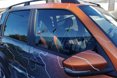 Панель приборов – как у электрического Ларгуса. От него же шайба управления трансмиссией. Весь центральный тоннель – в новом исполнении. Мультимедиа – с Яндекс-навигатором. Плюс кожаная обивка сидений и дверей.