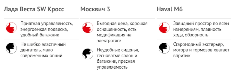 Журнал «За рулем» сравнил кроссоверы Москвич 3, Лада Веста SW Кросс и Haval M6. Эти совершенно разные автомобили объединяет цена – около 2 млн рублей и передний привод. В ходе испытания эксперты оценили машины по ряду характеристик. По итоговой оценке победителем стала Лада Веста.