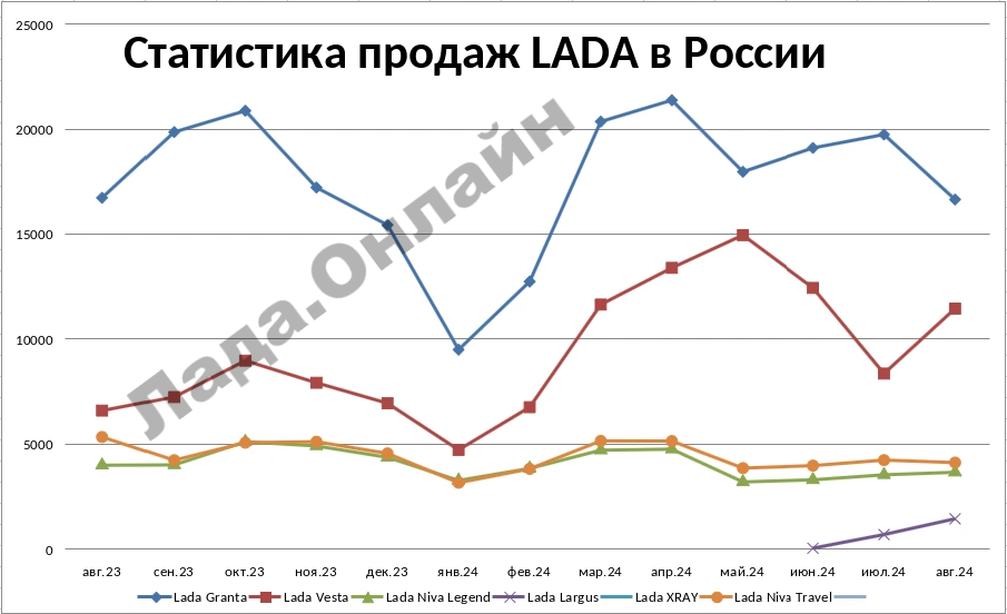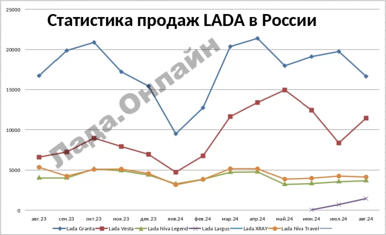 Продажи LADA Granta соответствуют среднегодовому показателю и составили 16 703 автомобиля. По итогам 8 месяцев продано 137 876 Granta (+ 4,4% к 8 месяцам прошлого года).