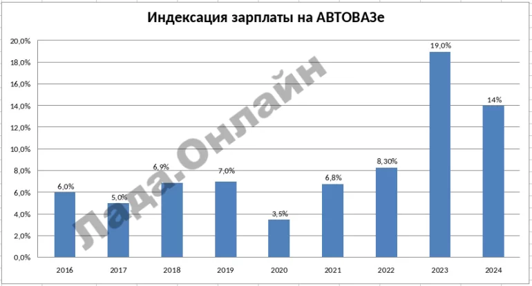 С целью поддержания покупательной способности заработной платы работников АО «АВТОВАЗ» по согласованию с первичной профсоюзной организацией АО «АВТОВАЗ» ACM РФ с 1 сентября 2024 года было произведено повышение тарифных ставок и окладов рабочим, руководителям, специалистам и служащим на 5,0%, кроме работников, условия оплаты труда которых определяются дополнением к трудовому договору.