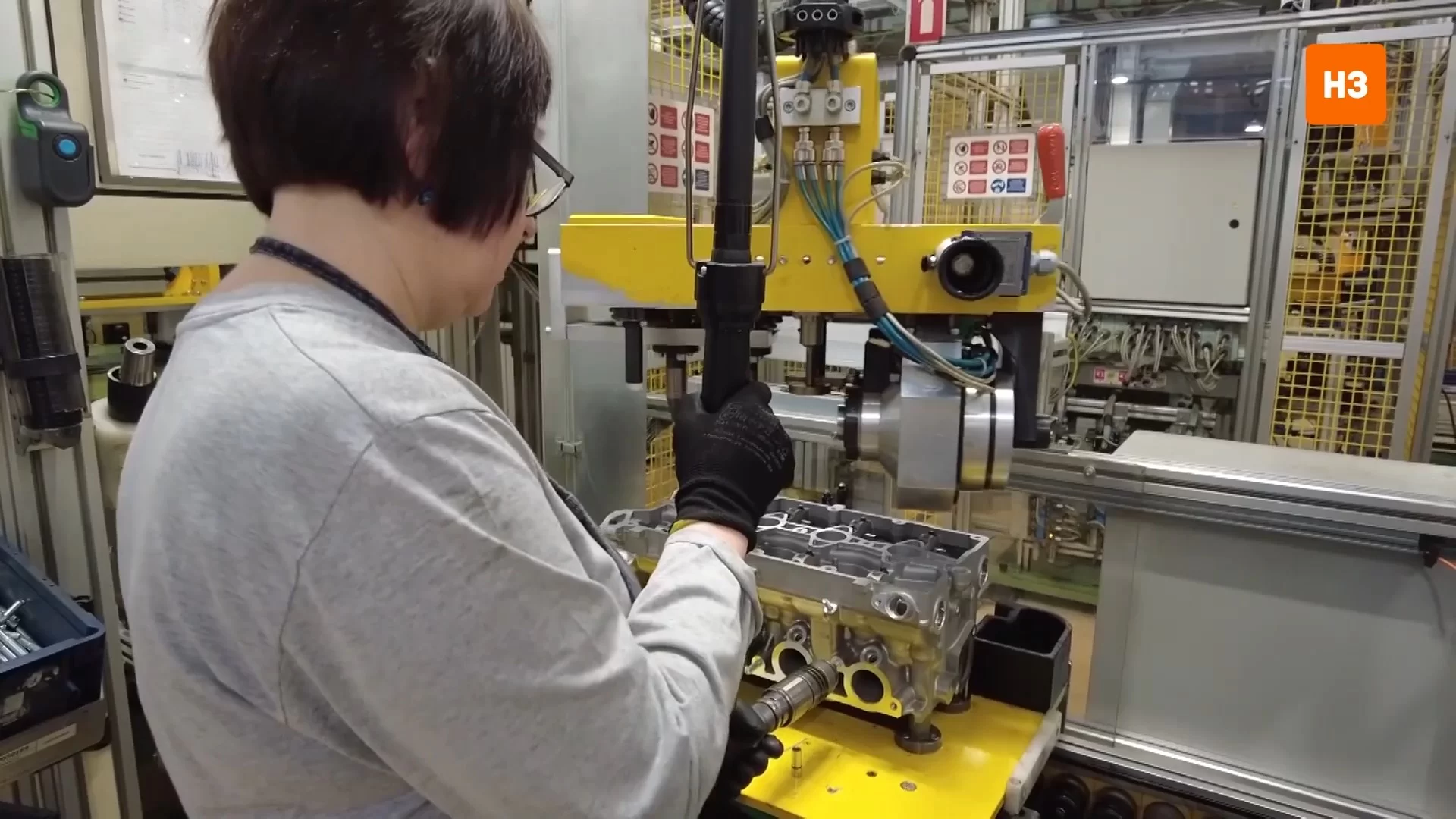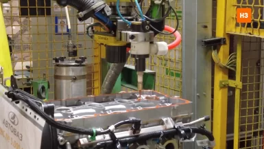 Линия хоть отработала 30 лет, но она до сих пор очень актуальная линия. Линия с большим процентом автоматизации, порядка 43% автоматизации этой линии. По сравнению с прошлым периодом, мы установили дополнительно роботы, которые наносят геометрию под головку блока, под крышку клапанную. Потому что на ней установлены все интеллектуальные гайковерты, которые отслеживают все моменты затяжки, все углы затяжек, обеспечивают тем самым качество выпускающих моторов.