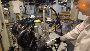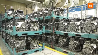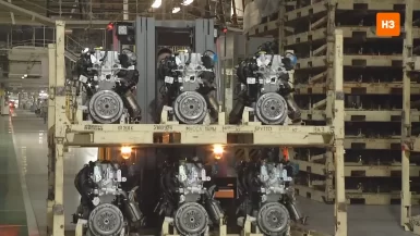 Длина линии крауза более 500 метров. В смену здесь работают 53 человека, и каждые 40 секунд с линией сходит готовый двигатель.