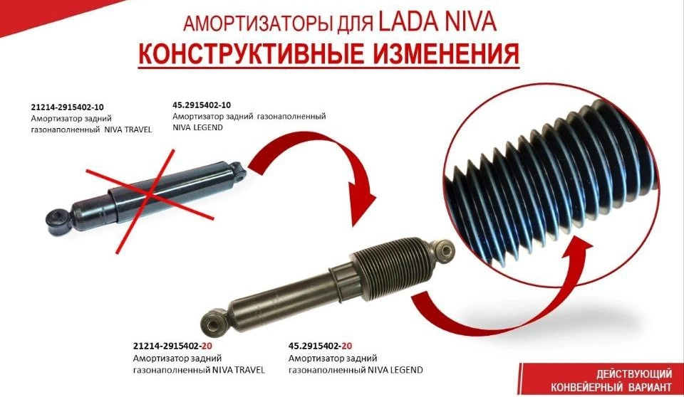 «СААЗ Комплект» (поставщик АВТОВАЗа) сообщил о том, что модернизировал задние амортизаторы для внедорожников LADA. Для повышения эффективности защиты узла уплотнения от воздействия внешней среды (попадание пыли, грязи) испытан и внедрён в производство гофрированный кожух. Амортизаторы поступили в продажу с ноября 2024 года.