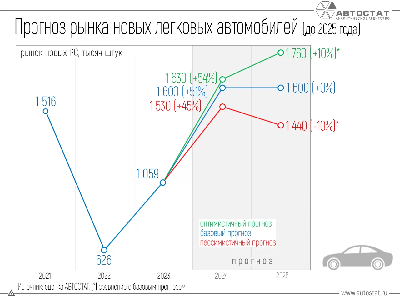 - Пессимистичный: под влиянием негативных обстоятельств рынок может сократиться до 1,44 млн единиц (-10%)
