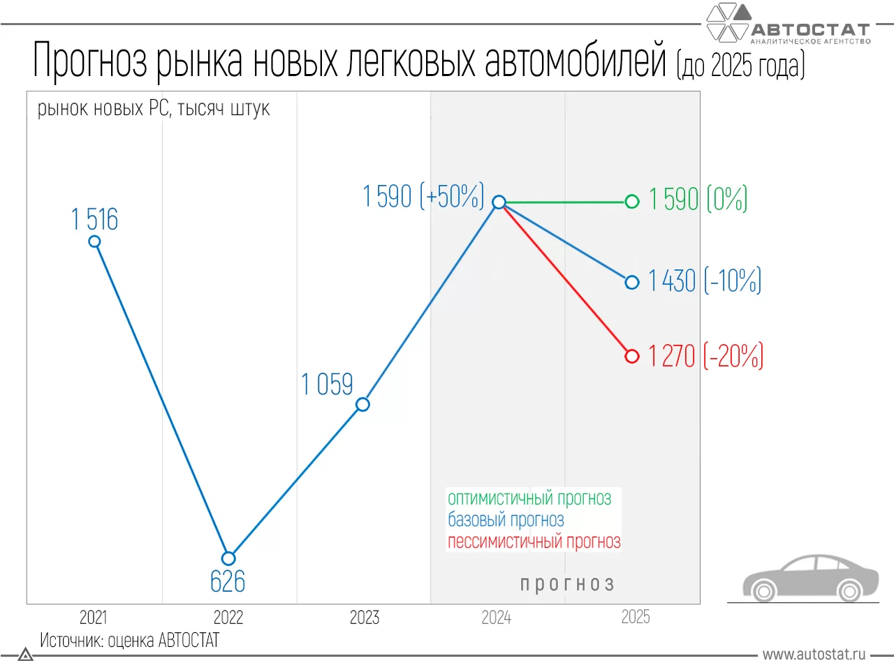 - Пессимистичный: под влиянием негативных обстоятельств рынок может сократиться и до 1,27 млн единиц (-20%)