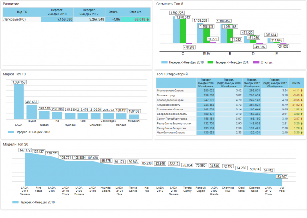 Всего за 12 месяцев прошлого года было продано 5 млн 425,5 тыс. единиц, что на 2,4% больше, чем за 2017 год (5 млн 300,8 тыс. шт.). При этом продажи машин российских марок упали на 4%, а иномарок – выросли на 5,1%.