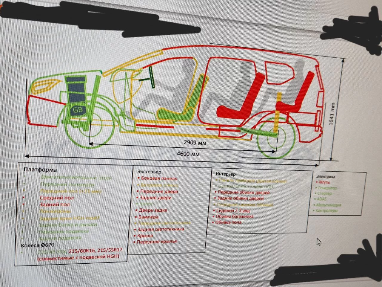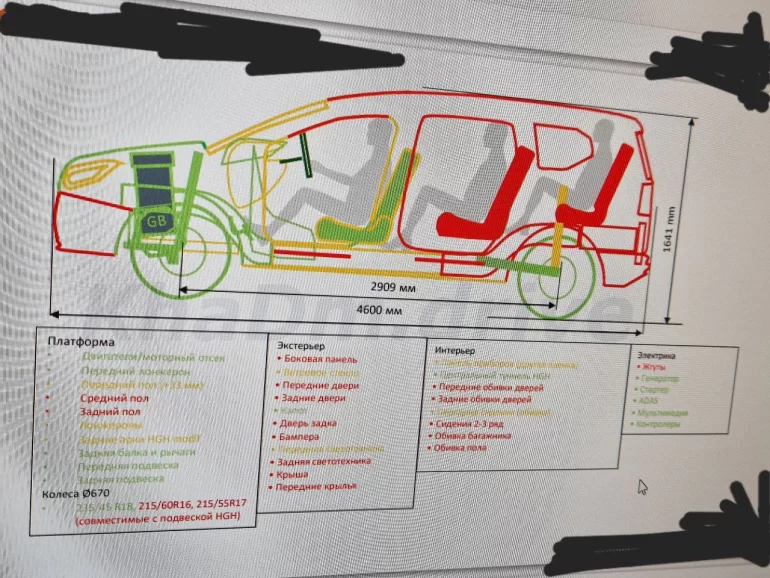 Первые подробности о перспективном вэне LADA опубликовал блогер KhaDm в телеграм. Из предоставленной фото следует, что габаритная длина автомобиля составит 4,6 м, высота — 1,64 м. Колесная база — 2,91 м. Салон будет иметь семь мест, скомпонованных в три ряда.