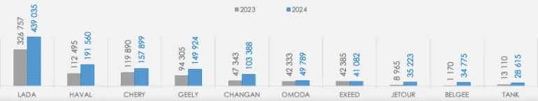 Отсутствие конкуренции привело к тому, что российские покупатели стали все чаще присматриваться к китайскому автопрому. На российских дорогах, в каршеринге стали появляться такие бренды китайского автопрома, как Haval, Chery, Exeed, причем некоторые модели этих марок стали копиями ушедших европейских брендов и начали активно конкурировать с ними. Все это привело к тому, что в 2024 году доля китайских автомобилей на российском рынке превысила 15% в сравнении с 5% на начало 2020-го.