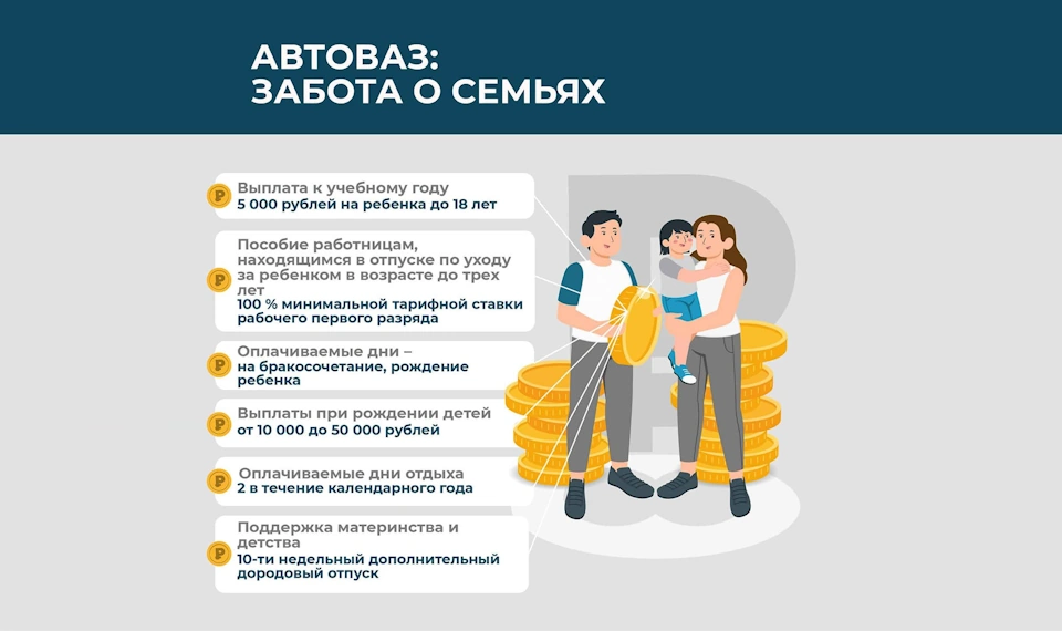 - Выплата многодетным работникам АВТОВАЗа в размере 5 тысяч рублей к новому учебному году.