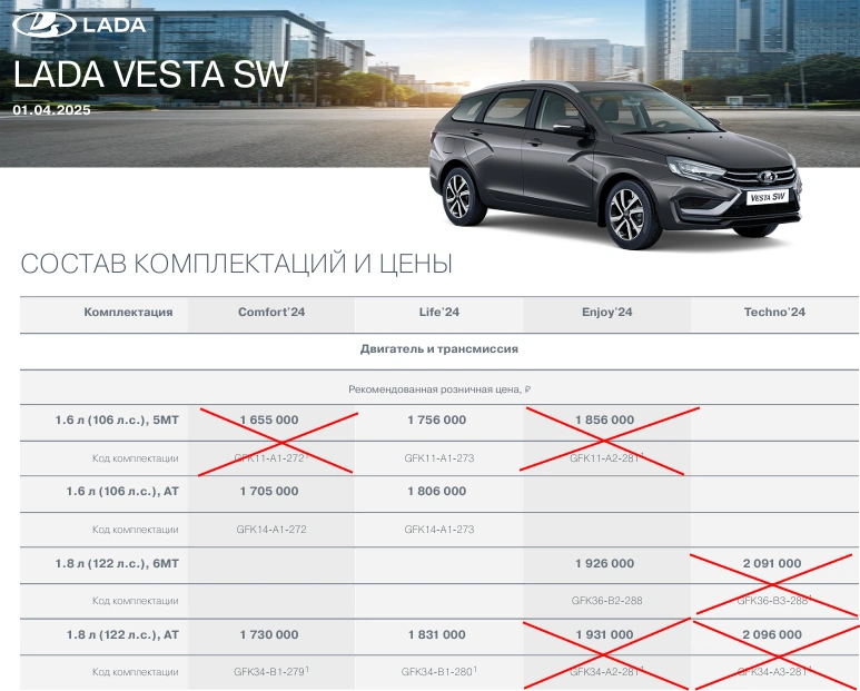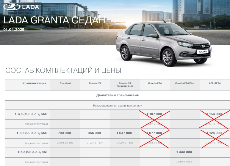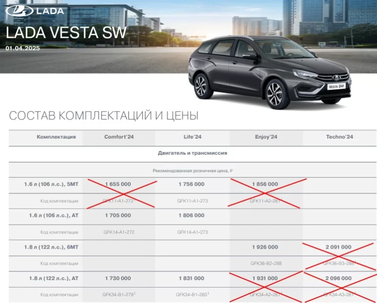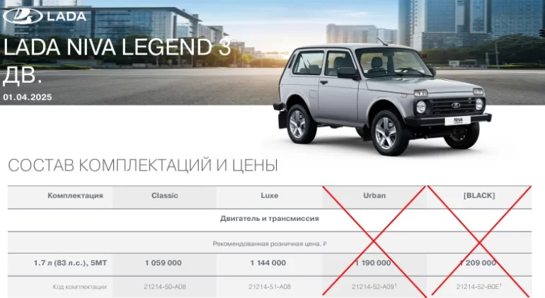Следующие версии автомобилей LADA получили пометку «не производится»: