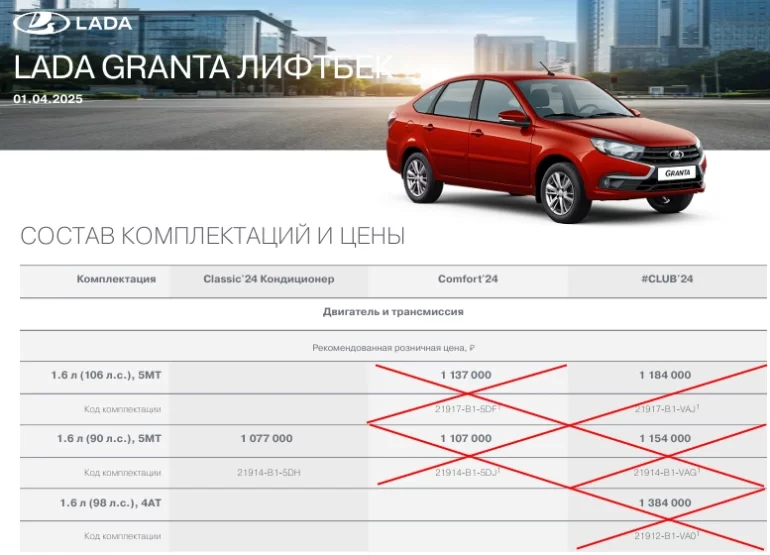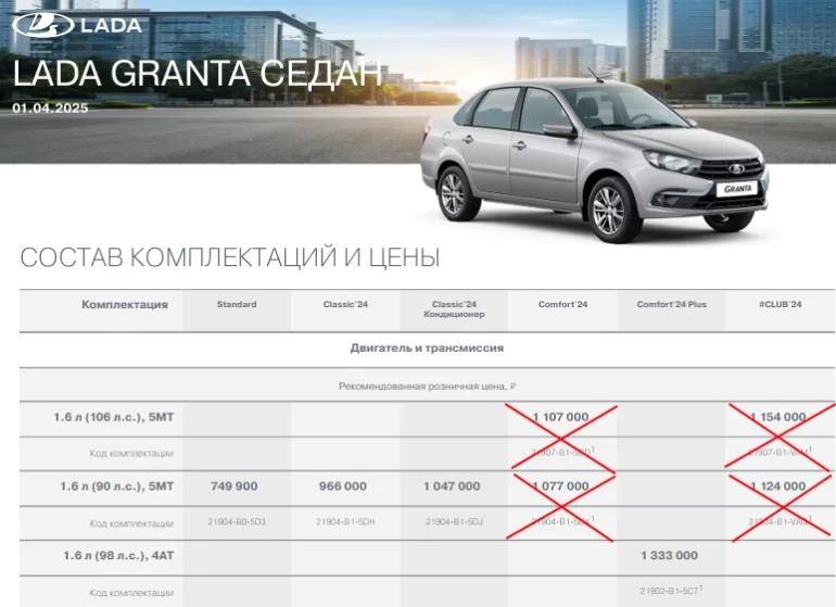 В ходе регулярного мониторинга цен и комплектаций автомобилей LADA сайту Лада.Онлайн удалось выяснить, что с начала апреля АВТОВАЗ обновил прайс-листы моделей LADA. Рекомендованная розничная цена не изменилась, однако значительная часть комплектаций теперь не производится.