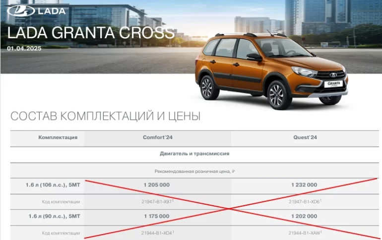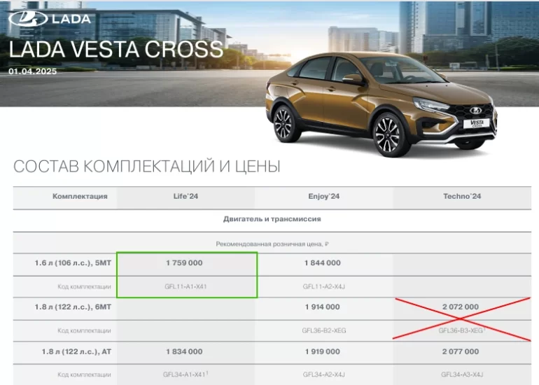 Стоит отметить, что версию Lada Vesta Cross Life'24 1.6 л (106 л. с.), 5МТ вернули в производство.