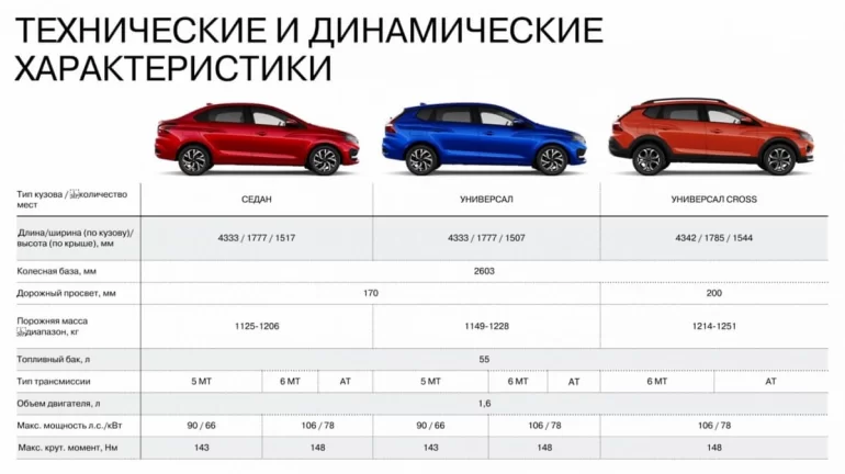 Габаритная длина седана и универсала — 4333 мм, на 65 мм больше, чем у Гранты, но на 107 мм меньше, чем у Весты. Габаритная длина Искры Кросс-универсал — 4342 мм, +194 мм относительно Гранты Кросс и -103 мм относительно Весты SW Cross.