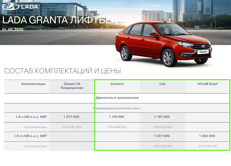 В конце апреля АВТОВАЗ объявил о начале продаж ТОП версии Lada Granta #Club и #Quest. Вместе с этим с мая некоторые старые комплектации, которые уже не производились были убраны из прайс-листов семейства. Вместо них появились новые версии исполнения с новой рекомендованной розничной ценой. Сайт Лада.Онлайн разобрался во всех изменениях.