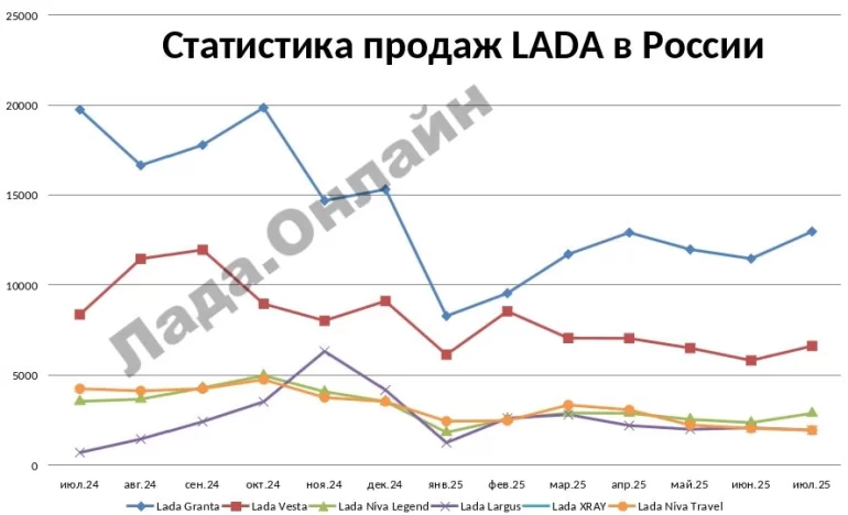 Согласно данным аналитического агентства «АВТОСТАТ», по итогам второго летнего месяца 2025 года в нашей стране было реализовано 120 649 новых легковых автомобилей. Это на 11,4% меньше, чем в июле прошлого года. Лидерство на российском рынке с огромным преимуществом сохраняет отечественная марка LADA.