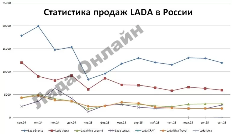 Согласно данным агентства «АВТОСТАТ», по итогам сентября нынешнего года в нашей стране было реализовано 122 659 новых легковых машин, что на 18,7% меньше, чем в том же месяце 2024-го. Лидерство на российском рынке с заметным отрывом сохраняет отечественная марка LADA.