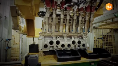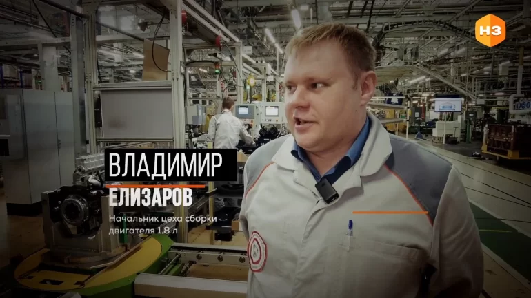 Начальник цеха сборки двигателя 1.8л рассказал, что в ходе модернизаций на заводе добавили 5 автоматических станций и 9 ручных постов. Комплектующие для мотора поставляются на линию также в КИТ коробках, но уже в автоматическом режиме с помощью ANT-тележек.