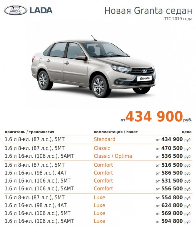 ![АВТОВАЗ изменил цены и комплектации Lada Granta FL]()