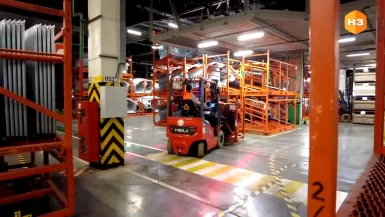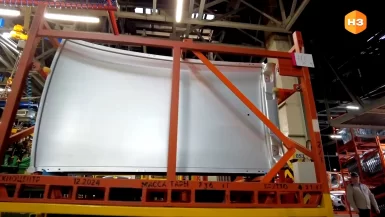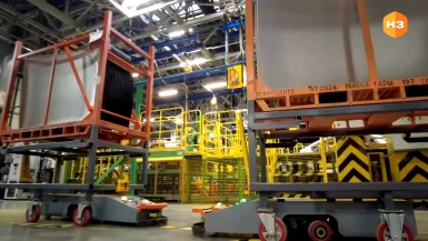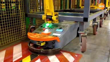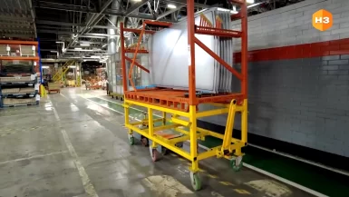 Процесс доставки автоматизирован. Как только заканчивается нужная деталь, крыша существует в трех вариантах согласно типу кузова, оператор нажимает соответствующую кнопку на пульте. Водитель погрузчика получает сигнал на складе и выставляет нужную паллету, а затем, также используя пульт, отправляет в дело АМТ телеги. Сразу две. Одна забирает пустую тару, а вторая везет заполненную. Обычно в таком процессе задействовано три транспорта. Здесь всего два, за счет автоматического выбора программного обеспечения. Да и вообще вся техника теперь работает с более высоким коэффициентом полезного действия.