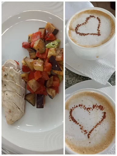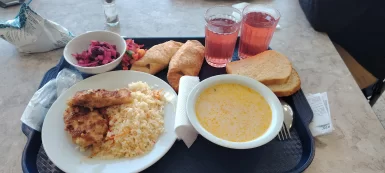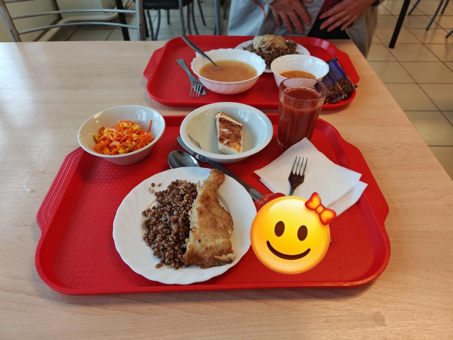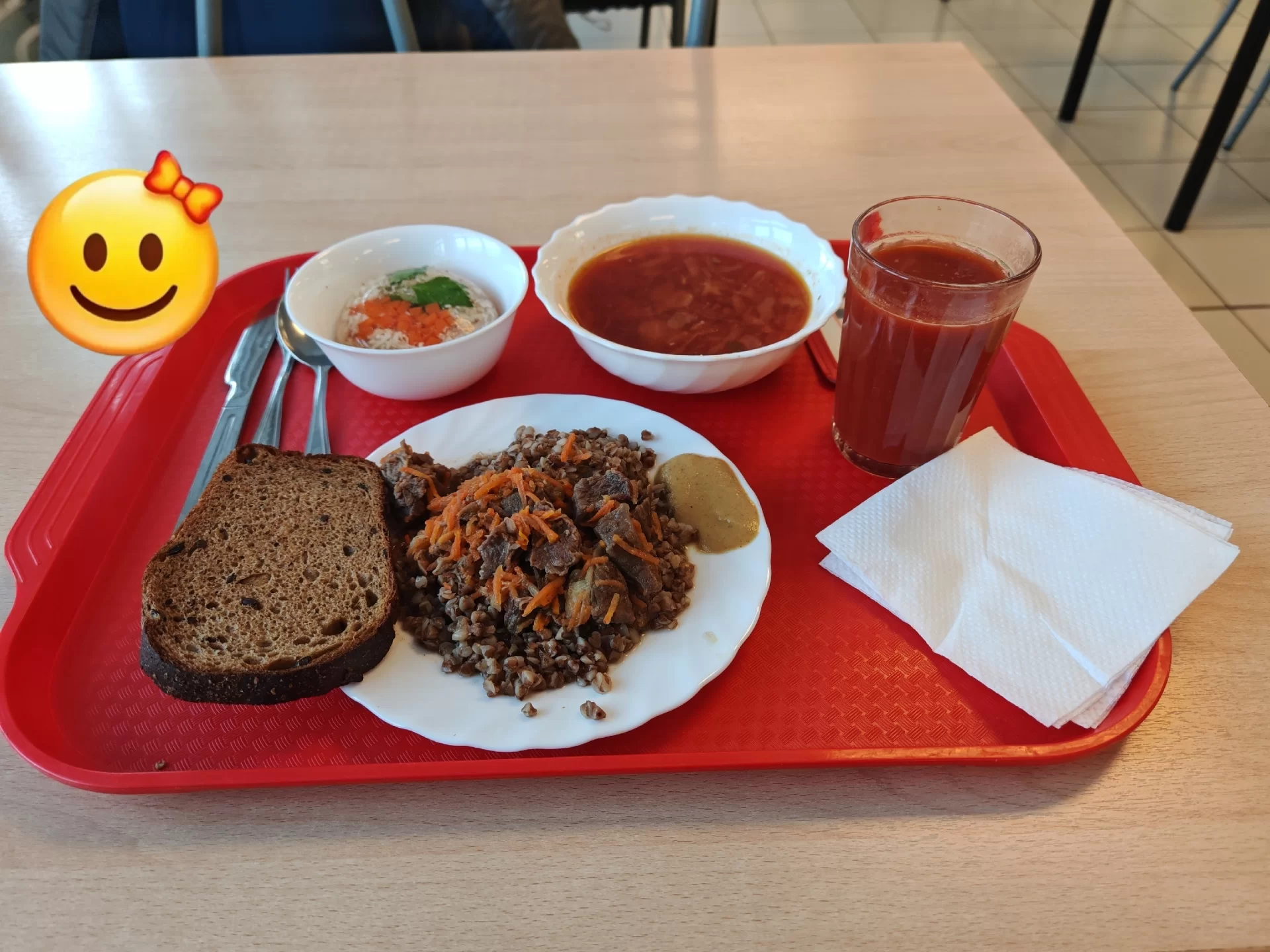 В меню — первые и вторые блюда из мяса птицы, свинины, говядины, рыбы. Также обязательно учитывается сезонность. Ассортимент блюд включает в себя овощи, характерные для данного сезона. А во время Великого Поста в меню свободной раздачи вводятся постные блюда.