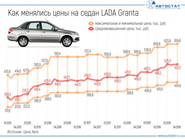 ![Как изменилась цена на седан LADA Granta за последние 4 года]()