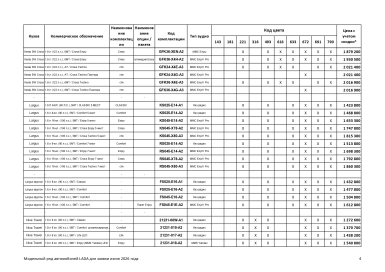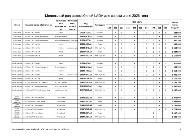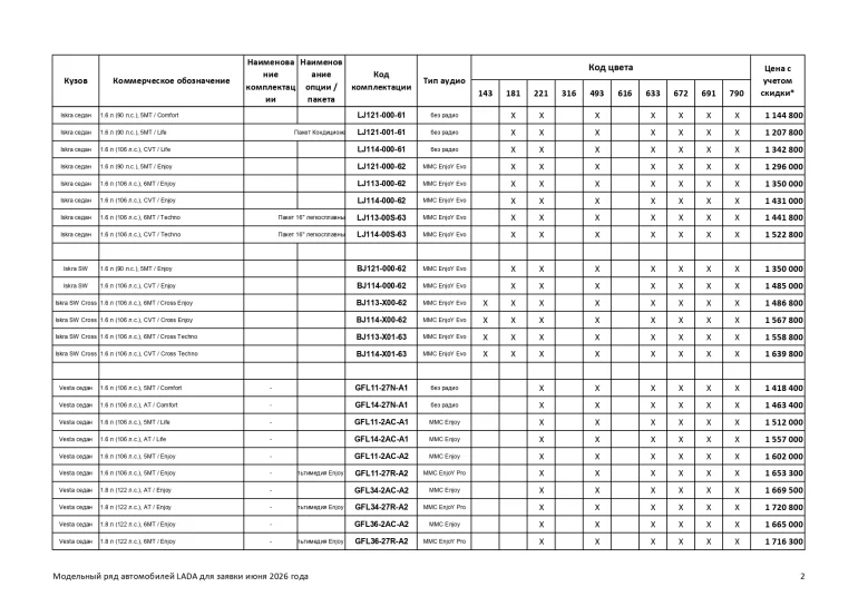 На АВТОВАЗе объявили о начале заявочной кампании на приобретение автомобилей LADA по корпоративной льготной программе. Ниже представлены модели автомобилей и цены на них для приобретения в июне 2026 года работниками завода и его дочерних обществ. Стоит отметить, что с этого месяца в перечне моделей присутствует новинка Lada Iskra.