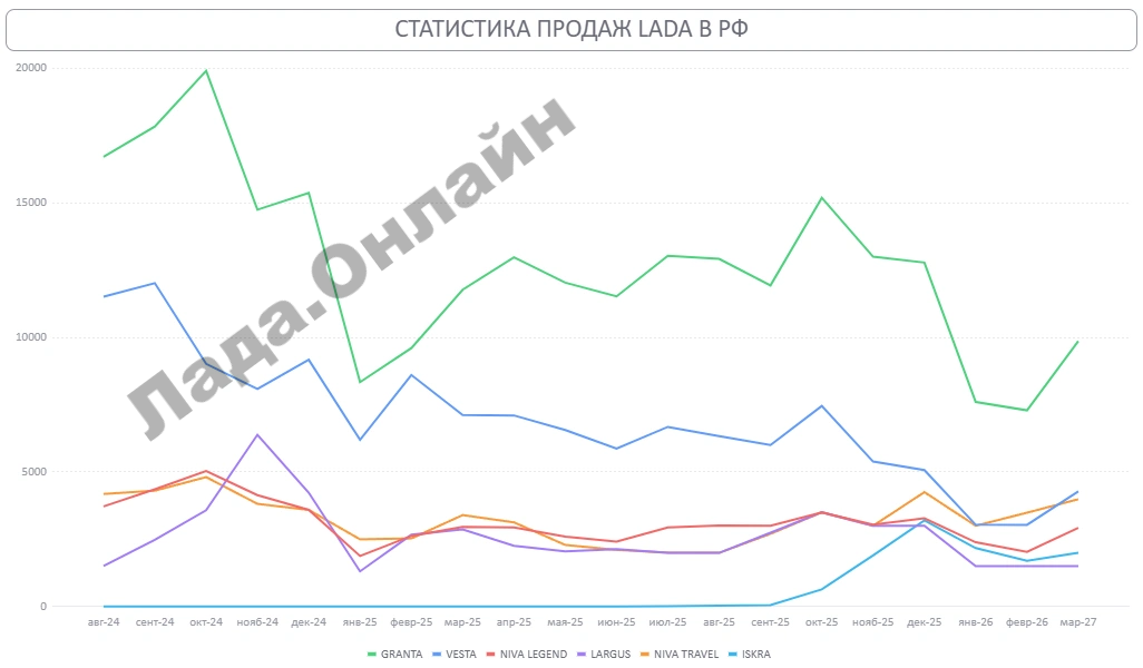 | 5 | LADA NIVA TRAVEL | 3 987 | 2 772 | 43.80% | 9 964 | 8 647 | 15.20% | 3.82% | 3.47% | 3.76% | 3.50% |