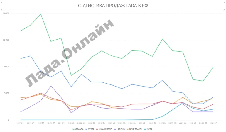 За первый весенний месяц нынешнего года в нашей стране было реализовано 104 278 новых легковых машин, что на 30,6% больше, чем в марте 2025-го. Об этом сообщают эксперты агентства «АВТОСТАТ». По итогам первого квартала 2026 года в нашей стране было продано 264 909 новых легковых автомобилей — на 7,3% больше, чем за три месяца прошлого года. Самая популярная модель Гранта, продажи Весты были на уровне Нивы Тревел, а Искра не попала в ТОП-10.