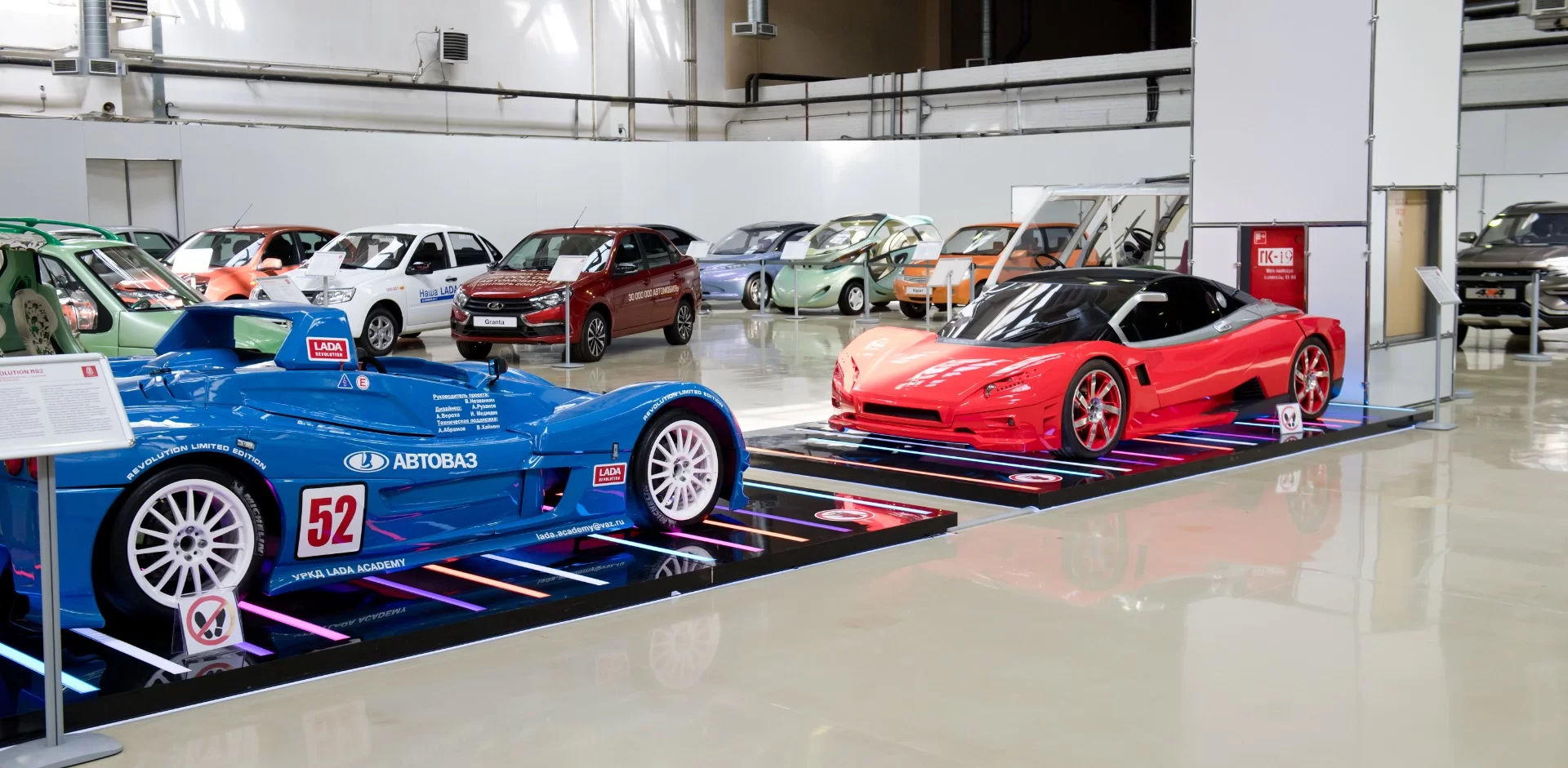Среди экспонатов музея — первая проданная ВАЗ-2101, первый миллионный автомобиль АВТОВАЗа, «Нива», работавшая в Антарктиде, автомобиль ВАЗ-2101, прошедший кругосветное путешествие, концептуальный кабриолет на базе LADA Kalina, концепт LADA XRAY, заложивший ДНК дизайна современного модельного ряда LADA, различные спортивные и опытные автомобили. По экспонатам музея можно проследить эволюцию российского автостроения: какие проекты следовали за мировыми трендами, а какие разработки были оригинальными. Многие автомобили музея находятся в полном рабочем состоянии — от самой ранней ВАЗ-2101 до одной из первых ВАЗ-2108.