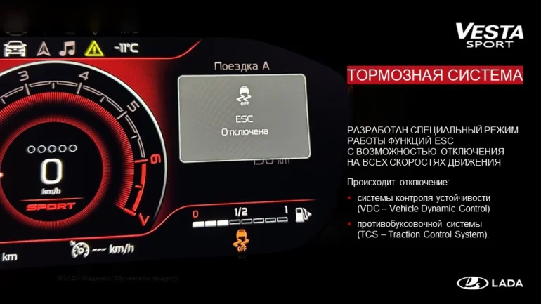 Разработан специальный режим работы функций ESC с возможностью отключения на всех скоростях движения.