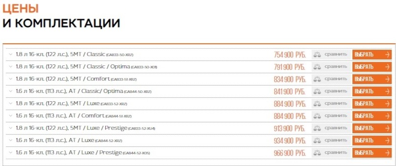 Во всех этих комплектациях на автомобиль устанавливается 1.6-литровый двигатель Renault H4Mk мощностью 113 л.с. и CVT (вариатор Jatco JF015E).