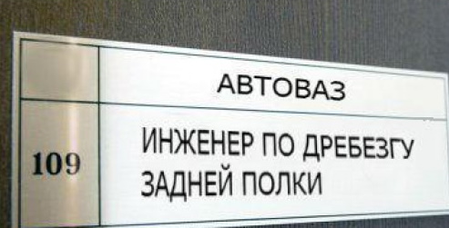 А я давно догадывался, что на ВАЗ есть отдел запланированных стуков, воя и гула деталей... прямо вижу трудовую "Инженер по вою коробки ", "Старший инженер по стуку подвески", "Руководитель сектора Скрипы приборной панели"...