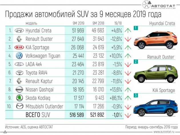 ТОП-10 моделей-лидеров российского рынка SUV: